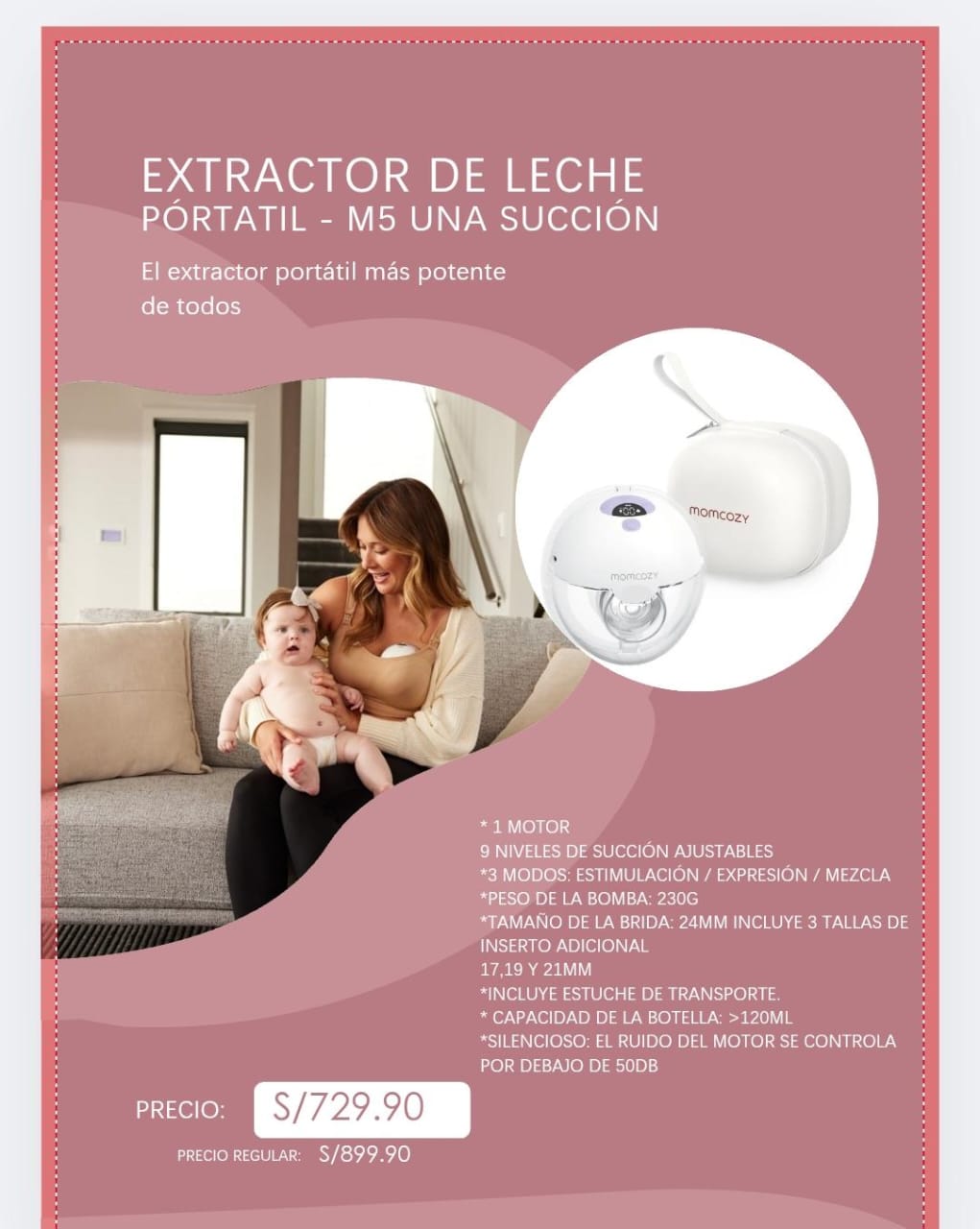 Nuestro extractor de leche “Momcozy” ha encontrado un ángulo de extracción horizontal preciso, exactamente igual que el ángulo de succión de un bebé en lugar de un tirón brusco del pezón hacia arriba o hacia abajo, lo que no solo permite una extracción sin dolor, sino que también provoca una mayor salida de leche. Otro giro nuevo lo aporta nuestro modo de vibración para extraer leche, que puede aflojar los conductos al mismo tiempo que se extrae leche, de modo que promete una extracción absolutamente suave y un vaciado perfecto en todo momento.